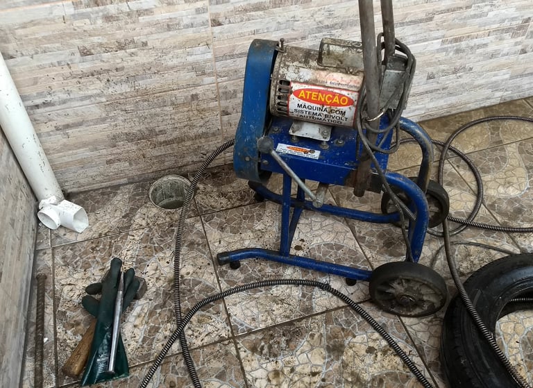 Desentupimento de ralo com maquinário moderno para desobstrução.